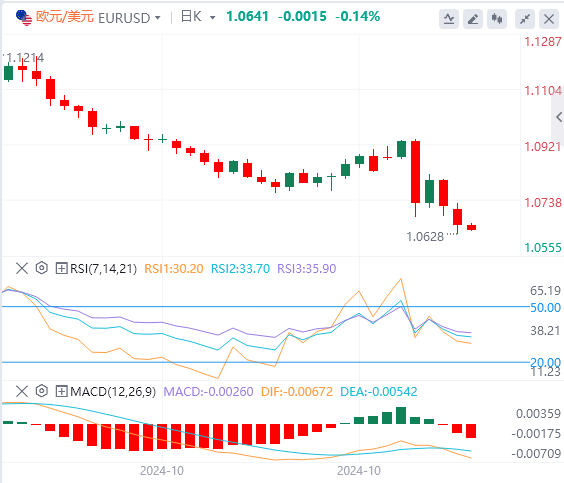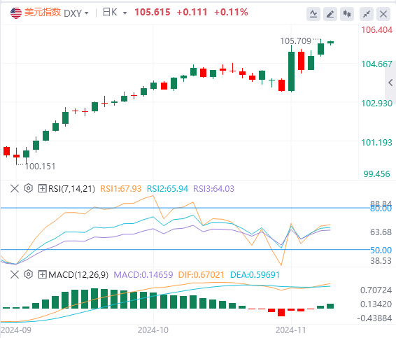 美元和黄金都延续了各自在上一交易日的走势。美元指数周一上涨,延续上周特朗普当选美国总统后所带动涨势。主要受到美元显着走强,以及特朗普当选美国总统后对财政政策和利率调降的影响,黄金价格周一暴跌逾2%。