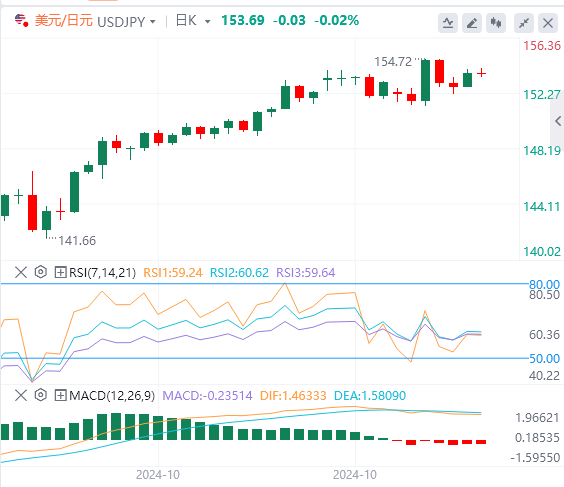 美元/日元似乎远高于152附近的支撑位。总体而言,150/152-155区间可以维持一段时间
