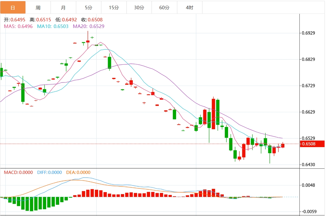 澳元/美元周五交投于 0.6500 附近,根据技术分析,看跌势头加强。该货币对仍处于下降通道内,14 天相对强弱指数 (RSI) 保持在 50 以下,表明负面情绪持续存在。