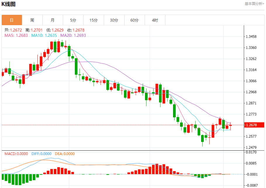 汇价高见1.2701,低见1.2629。上一交易日,汇价收于1.2672。