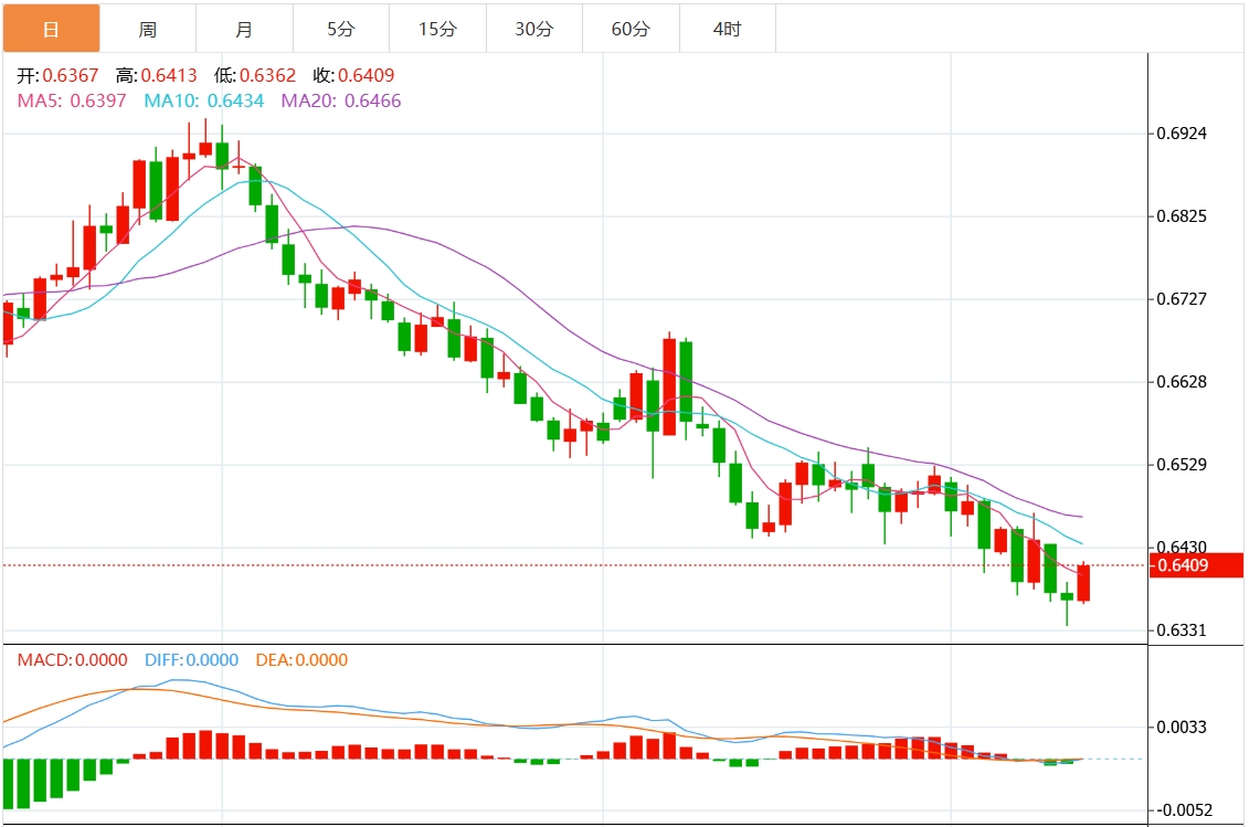 澳元/美元周四交投于0.6410附近。 日图技术分析表明,澳元/美元看跌倾向加大,原因是澳元/美元处在下降通道形态内。 此外,14天相对强弱指标(RSI)仍低于50水平,表明动能持续消极。