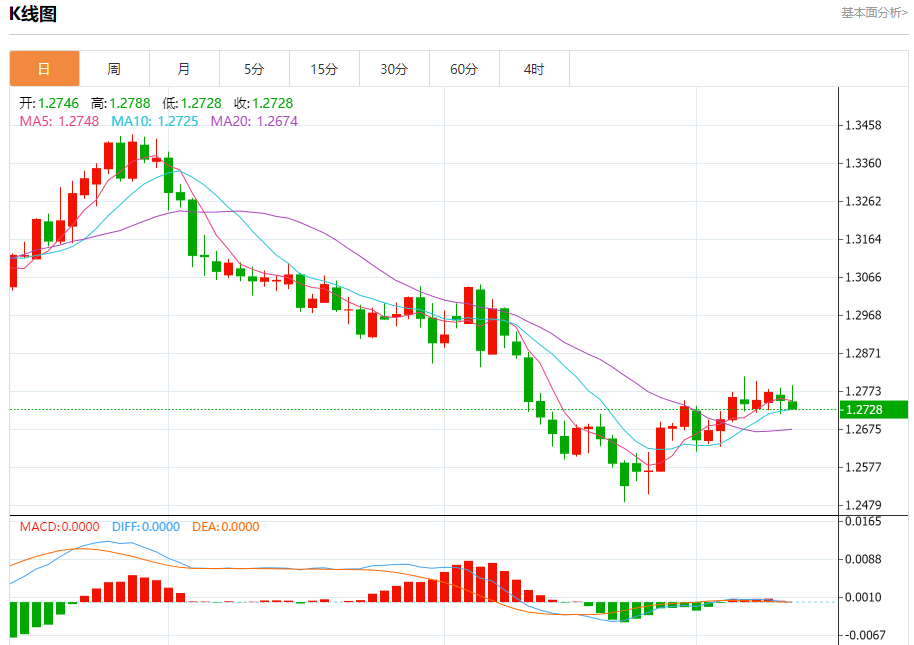 汇价高见1.2788,低见1.2730。上一交易日,汇价收于1.2750。