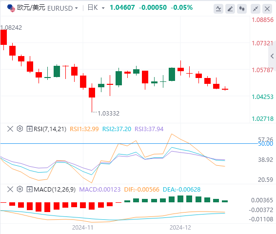 欧洲央行鸽派倾向和市场担忧欧元区经济前景继续打压欧元。事实上,欧央行周四已是今年第四次降息,并为2025年进一步放宽政策敞开了大门。相较于美联储(FED)不够鸽派的前景两者出现了很大背离,也验证了欧元/美元看跌前景。