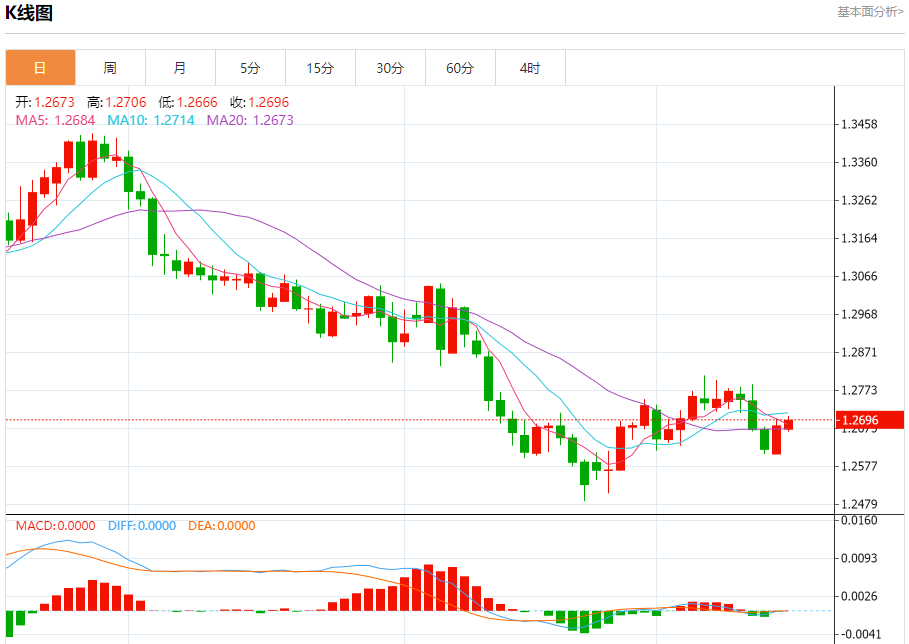 汇价高见1.2706,低见1.2666。上一交易日,汇价收于1.2682。