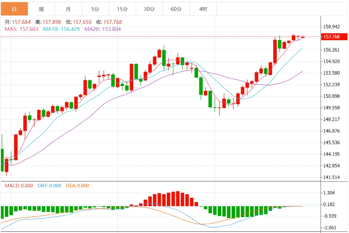 技术分析:美元/日元在月度高点158.00附近保持低迷