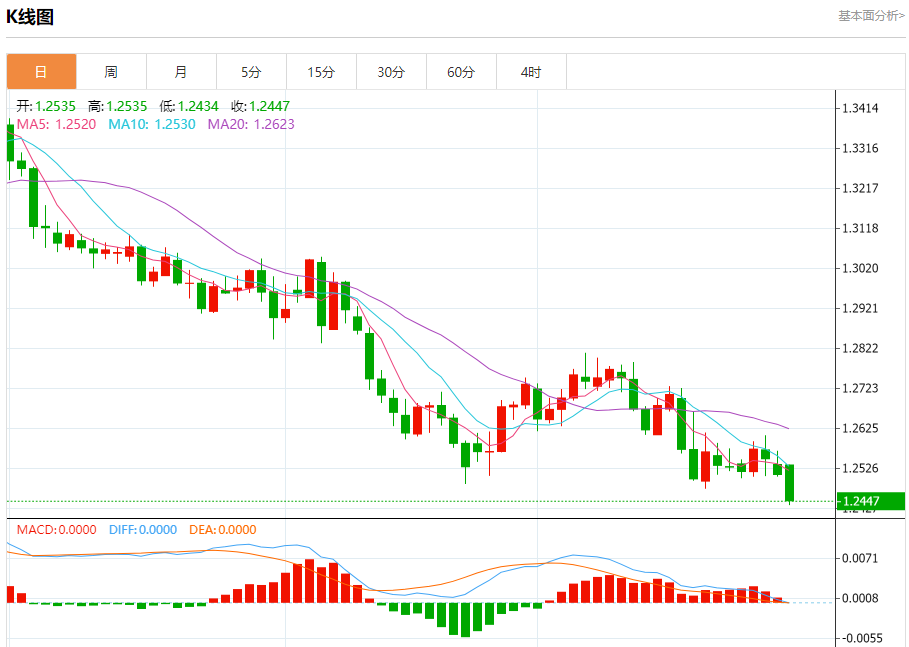 汇价高见1.2535,低见1.2435。上一交易日,汇价收于1.2511。