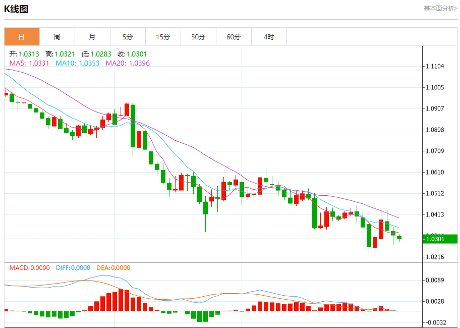 汇价高见1.0321,低见1.0283。上一交易日,汇价收于1.0318。