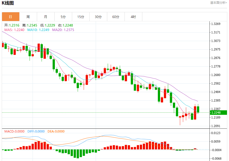 汇价高见1.2345,低见1.2229。上一交易日,汇价收于1.2317。