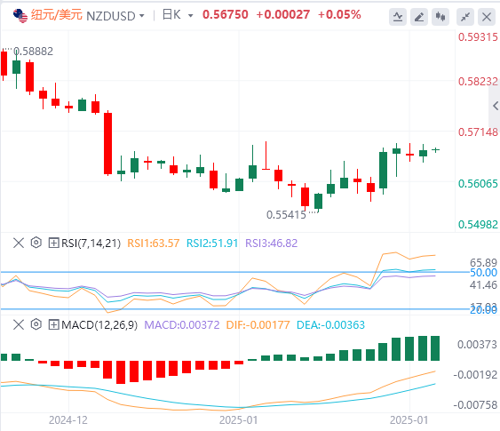 纽元/美元货币对收于0.5670,价格走势表明近期高点附近的盘整期,但看涨动能依然完好