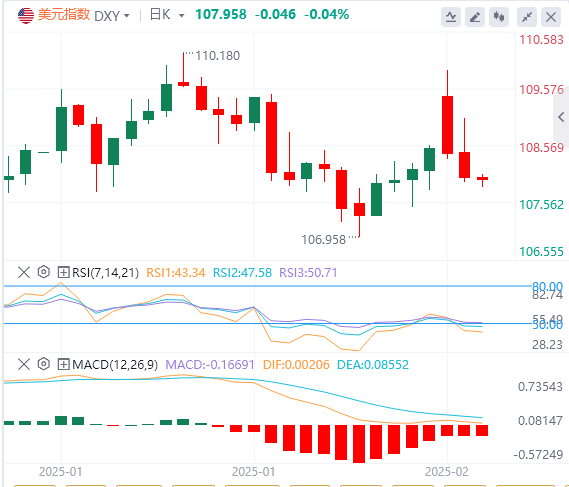 追踪美元兑六种主要货币的美元指数(DXY)周二收盘下跌0.42%,报107.99。现货黄金周二收盘大涨27.54美元,涨幅近1%,报2841.72美元/盎司。