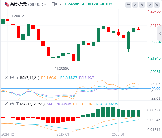 英镑/美元朝着短期阻力位1.25/26区域前进。只要无法突破上述阻力,短期内可能会再次回落。