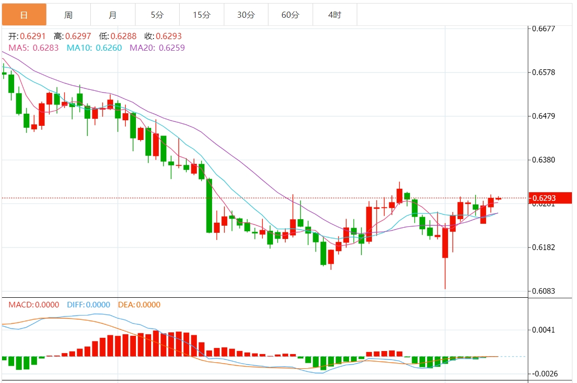 澳元/美元技术分析:交易于0.6300附近 支撑位出现在九日EMA
