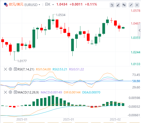欧元/美元的第一个上行障碍出现在2月19日的高点1.0461附近。需要关注的关键阻力位是1.0500-1.0505区域,代表心理水平和布林带的上边界。决定性地突破该水平将反弹至1.0533,即1月27日的高点。