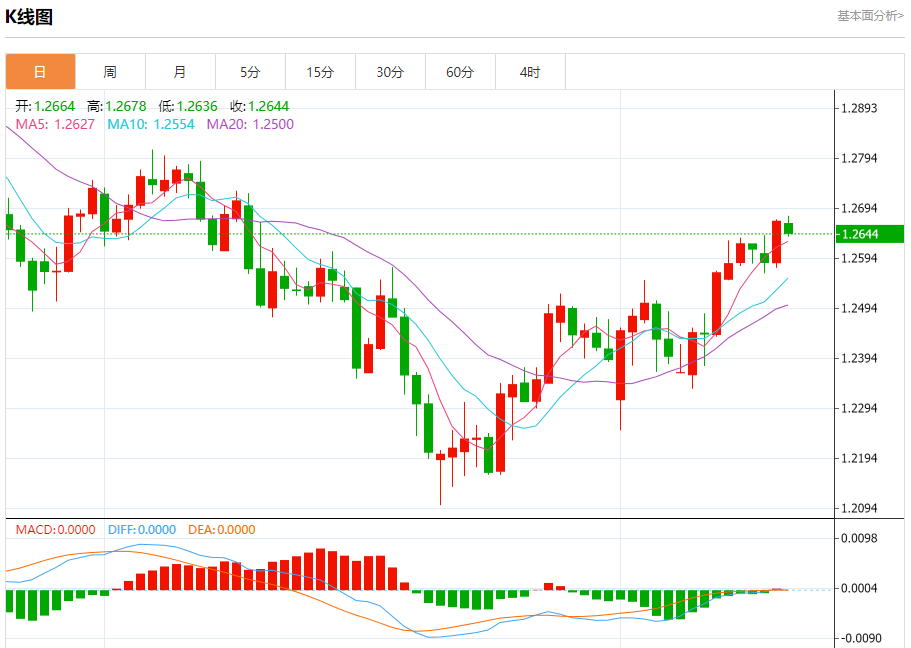 汇价高见1.2678,低见1.2636。上一交易日,汇价收于1.2668。