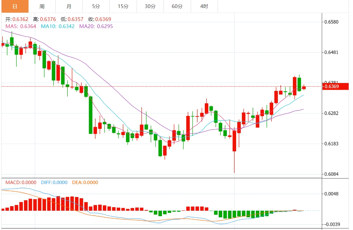 澳元/美元技术分析:可能测试0.6350支撑位,接近九日EMA