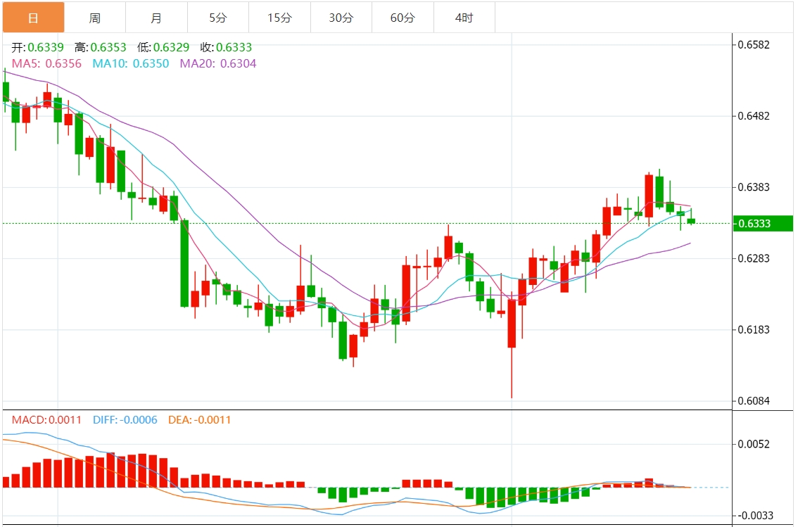 澳元/美元技术分析:在跌破 0.6350 后向 14 天 EMA 障碍移动