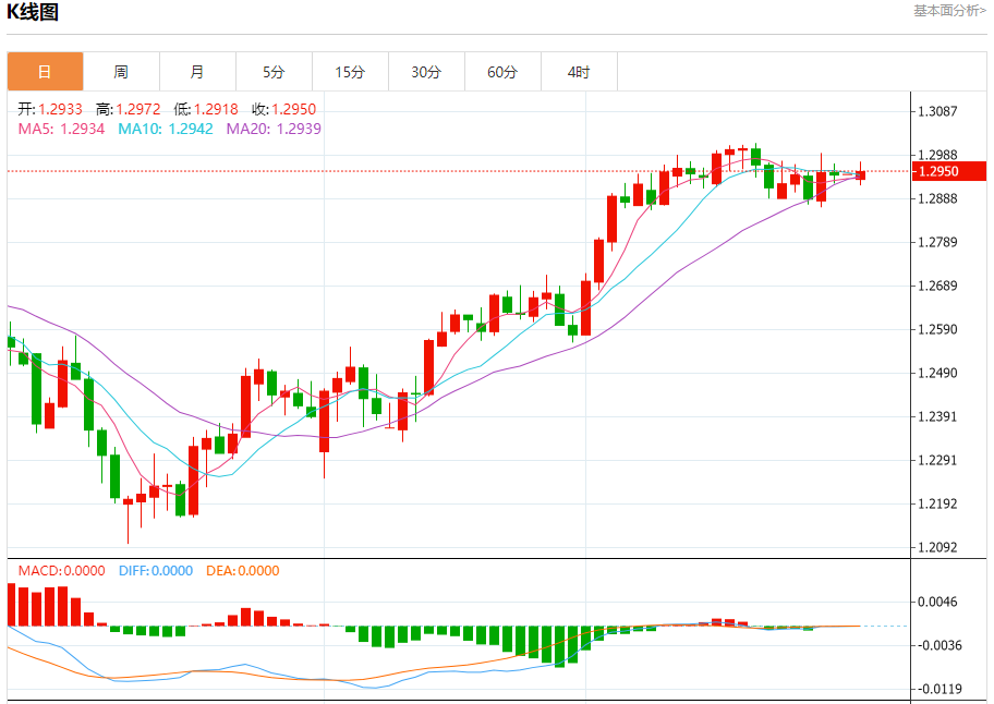 汇价高见1.2972,低见1.2918。上一交易日,汇价收于1.2944。