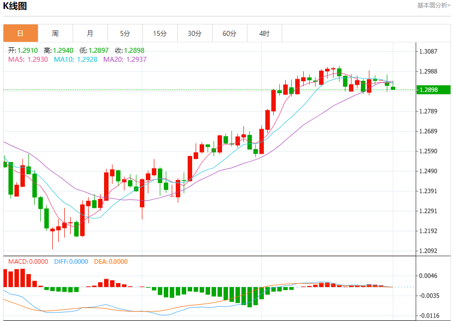 汇价高见1.2940,低见1.2897。上一交易日,汇价收于1.2917。