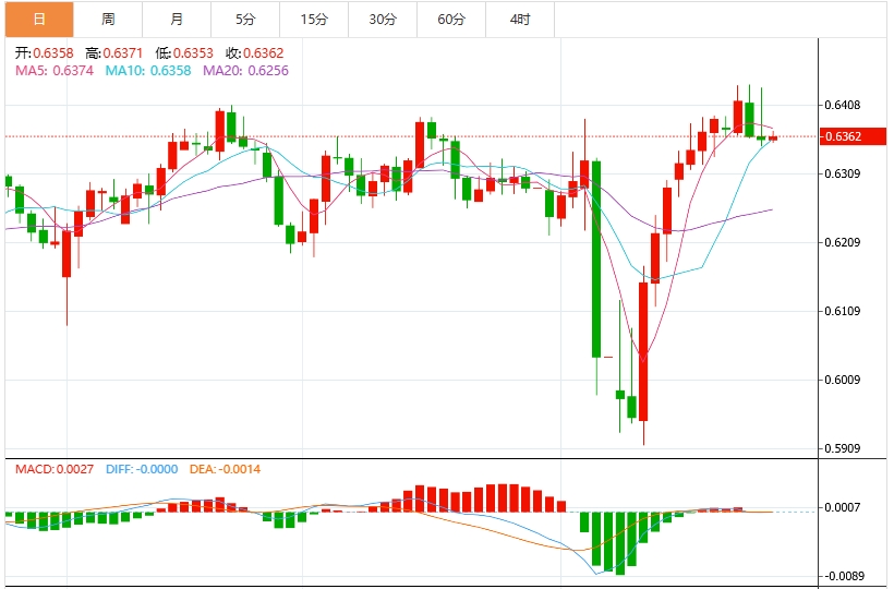 技术分析:澳元测试0.6350支撑位,接近九日EMA