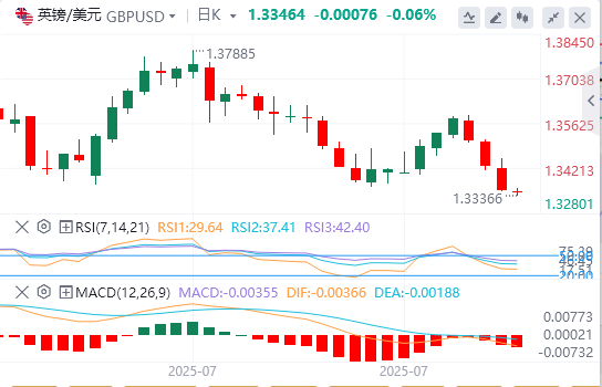 14天相对强弱指数(RSI)仍低于50水平,强化了看跌倾向。然而,英镑/美元货币对位于九日指数移动平均线(EMA)下方,表明短期价格动能较弱。