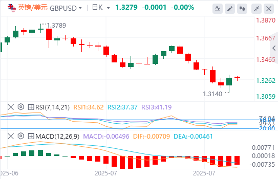 英镑/美元货币对可能会瞄准9日均线1.3332的直接障碍,然后是50日均线1.3432。突破这些水平将改善短期和中期价格动能,并支持该货币对测试下降通道的上限1.3520。进一步上涨可能会导致该货币对接近1.3788,这是自7月1日记录的2021年10月以来的最高水平。