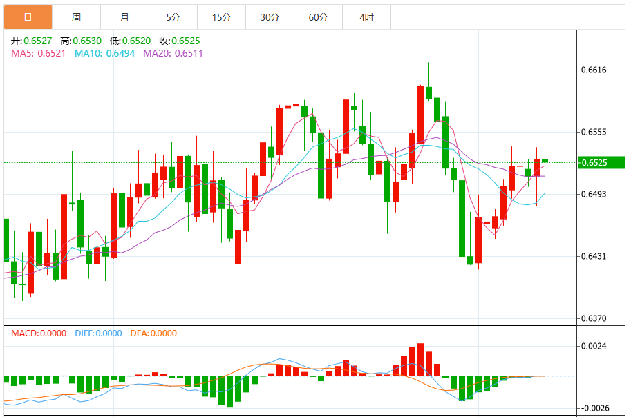 技术分析:澳大利亚元回落至0.6500附近的九日EMA支撑位