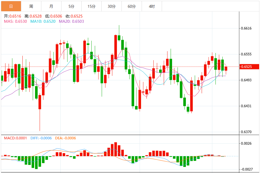 技术分析:澳元从0.6500附近的支撑区反弹
