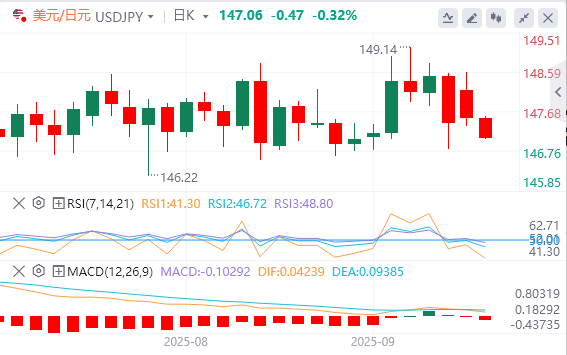 美元/日元正在下跌,如果跌破147,可能会进一步下跌,并测试146的支撑位。短期区间149-146可能维持一段时间。