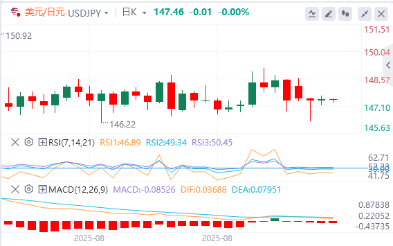 美元/日元昨日稳定在147以上。只要守住146附近的支撑位,那么美元/日元可能在146-148/49区域内交易一段时间。