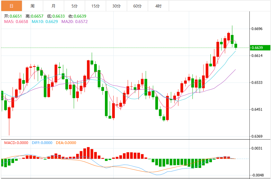 技术分析:澳元在回落至11个月高点后跌破0.6650