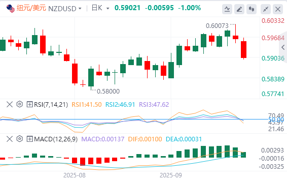 新西兰统计局报告称,第二季度经济环比收缩0.9%,扭转了3月份季度0.8%的涨幅。该数据弱于市场普遍预期的下降0.3%,并提振了对新西兰储备银行(RBNZ)进一步降息的押注,这反过来又被认为对纽元(NZD)造成沉重压力。另一方面,美元(USD)希望在前一天联邦公开市场委员会(FOMC)会议后从2022年2月以来的最低水平回升的基础上再接再厉,并对纽元/美元货币对施加额外压力。