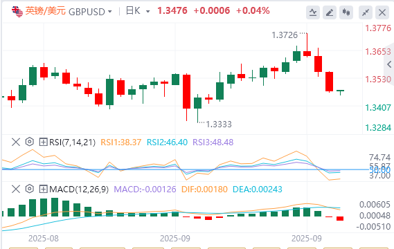 然而,14天相对强弱指数(RSI)仍低于50水平,强化了看跌倾向。此外,英镑/美元货币对位于九天指数移动平均线(EMA)下方,表明短期价格动能较弱。