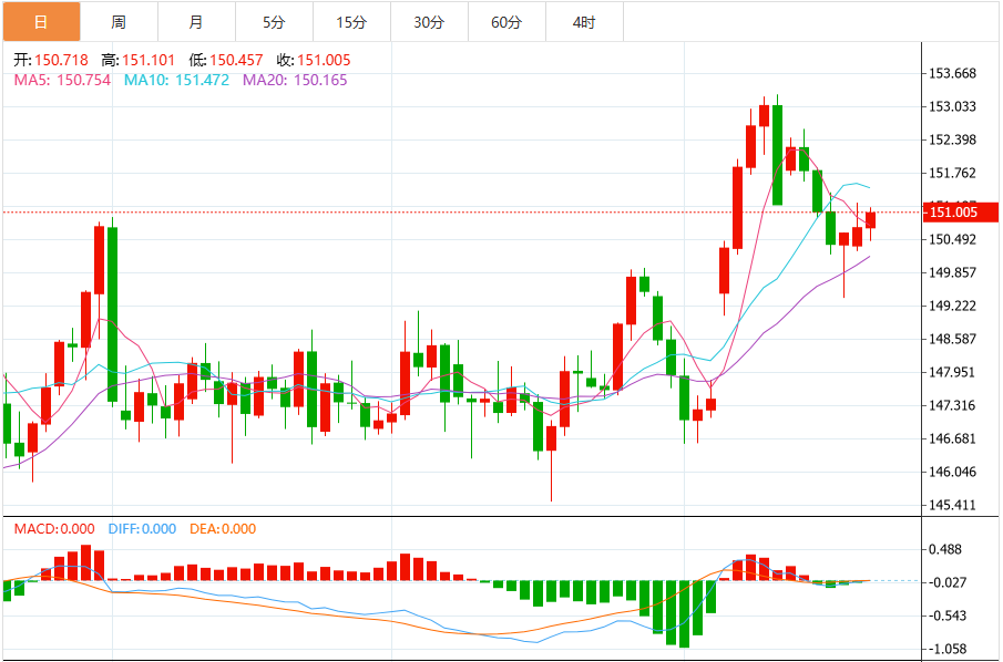 技术分析:美元/日元可能进一步攀升,测试151.75的汇聚阻力位