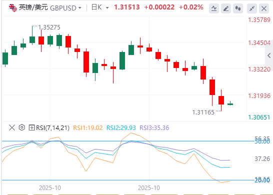 然而,英镑/美元货币对的上行空间可能有限,因为美元可能会因美联储进一步降息的可能性下降而获得支撑。美联储主席杰罗姆·鲍威尔指出,由于美国政府持续关门期间数据有限,美联储正在努力平衡其控制通胀和支持就业的双重使命。鲍威尔警告说,在官方数据报告恢复之前,政策制定者可能不得不采取观望态度。他还补充说,12月再次降息还远未确定,强调前景仍不确定。