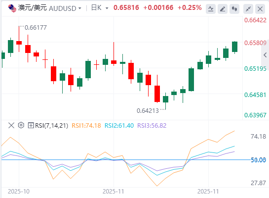 美元徘徊在自11月14日以来的最低水平附近,该水平于周一触摸,期间美联储预期鸽派,这也有助于限制澳元/美元汇率的下行空间。根据芝加哥商品交易所集团的FedWatch工具,交易者预计12月10日降息25个基点的可能性接近90%。此外,关于下一任美联储主席鸽派选择的猜测削弱了美元。