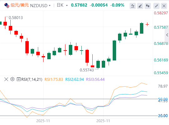 纽元/美元本周从0.5580继续反弹,因美元走软,受ADP就业数据急剧恶化推动。疲弱的劳动力数据强化了美联储12月降息的预期,促使主要货币对出现新一轮美元抛售,给新西兰货币上涨空间。支撑基础还来自RBNZ上周的鹰派降息,政策制定者暗示宽松周期可能已结束。