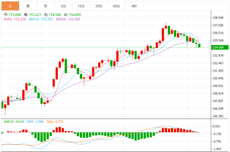 周五(12月5日),美元/日元下跌154.626,暂报154.599,跌幅0.30%。
