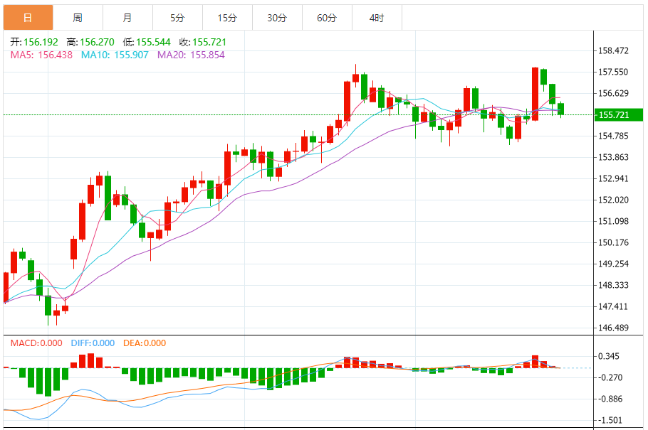 周三(12月24日),美元/日元下跌155.746,暂报155.718,跌幅0.30%。