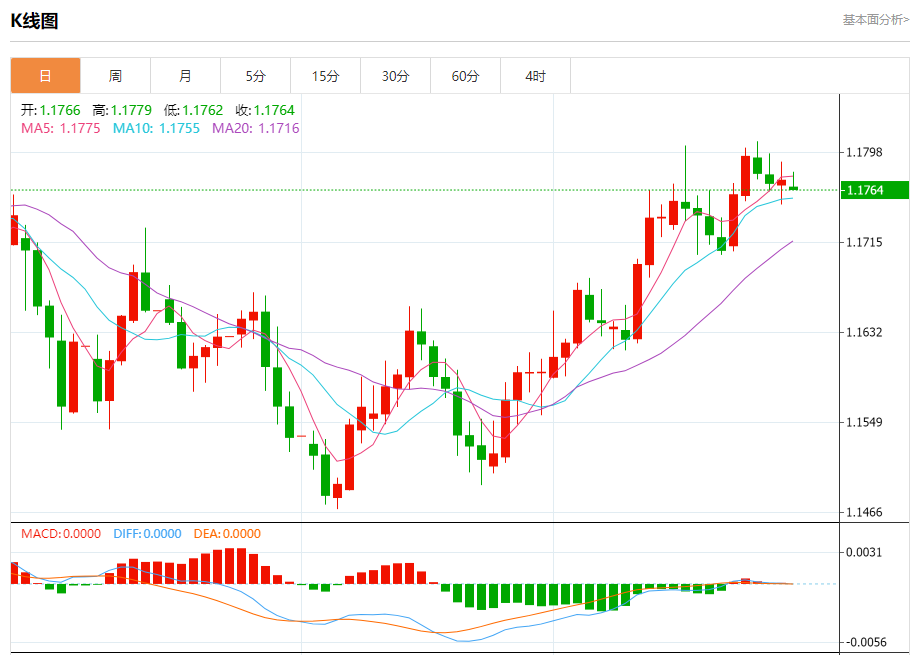 汇价高见1.1779,低见1.1762。上一交易日,汇价收于1.1772。