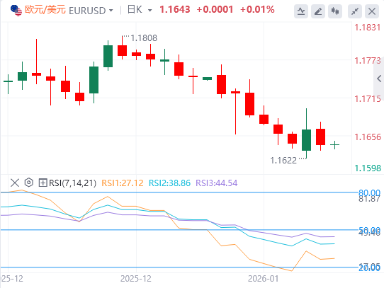 下行方面,欧元兑美元汇率可能跌至12月1日创下的六周低点1.1589。若跌破该水平,将暴露下一个约1.1468的基底,为2025年8月以来最低。