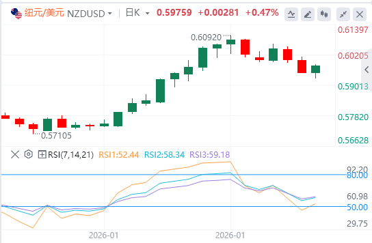 然而,随着新西兰储备银行(RBNZ)即将加息的预期减弱,纽元(NZD)继续面临阻力,NZD/USD的上涨空间可能仍受限。