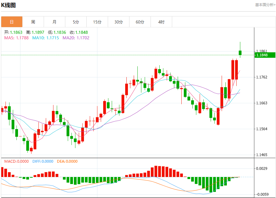 日线级别上,隔夜金价纽约时段强势突破1205/1207美元的关键回撤及4月下行趋势阻力,但涨势受200日均线的压制,最终收在1210美元上方,短期风险已由中性转为上行。指标上MACD红色动能柱扩张,双线金叉向上,KDJ双线向上。若日内能够继续收在1207美元上方,则存在进一步反弹的动能。