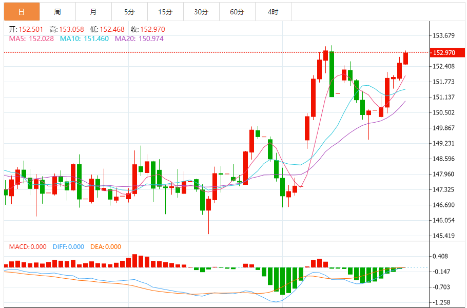 周一(10月27日),美元/日元上涨152.994,暂报152.984,涨幅0.09%。 市场基本面分析 日本通胀率持续高企,远超政策目标。日本的财政政策显示了“顺周期性”,而央行对加息态度却相当谨慎。日本央行为何“按兵不动”?日本货币政策又该如何选择?在2025外滩年会上,日本央行原行长白川方明和亚洲开发银行
