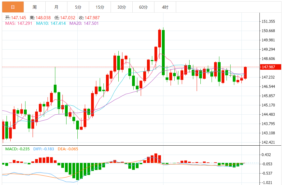 周二亚盘,日元(JY)在反弹的美元(UD)面前连续第三天下滑,使美元/日元汇率在周二亚洲时段升至近一周高点,约在147.70-147.75区域。日本央行(BoJ)下一次加息的可能时机的不确定性,加上亚洲股市普遍积极的基调,似乎削弱了避险日元的表现。然而,多个因素可能会阻止日元空头进行激进的押注。 基本面:尽管基本面支