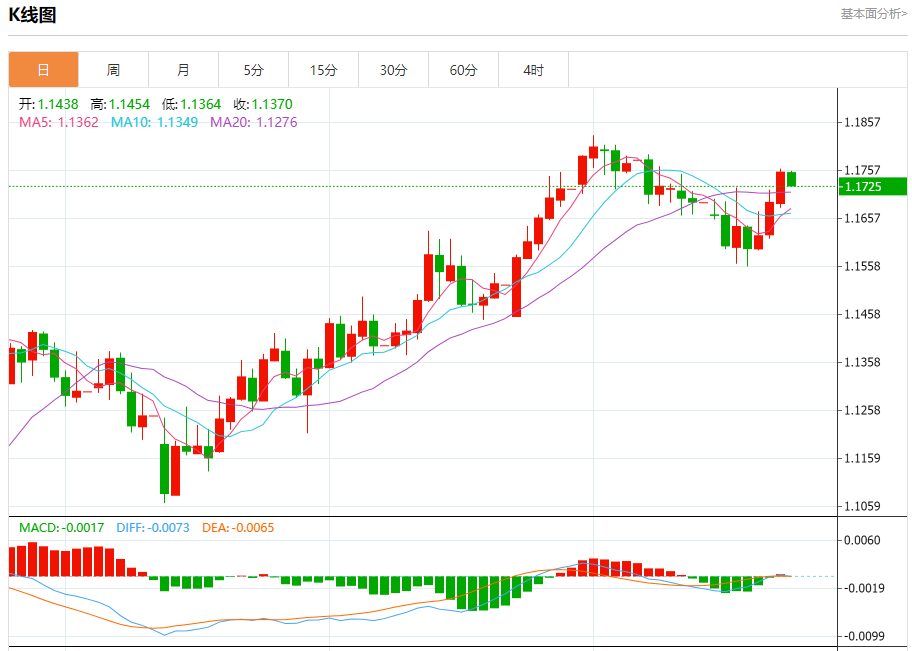 周四晚间,美元指数现报97.360,涨幅0.16%,现对美元兑欧元、英镑、日元主要货币对分析表述如下: 欧元/美元 汇价高见1.1780,低见1.1743。上一交易日,汇价收于1.1768。 日内建议:可以在1.1795---1.1730的区间上限卖出,有效破25个点止损,目标在区间的下限。 英镑/美元 汇价高见1