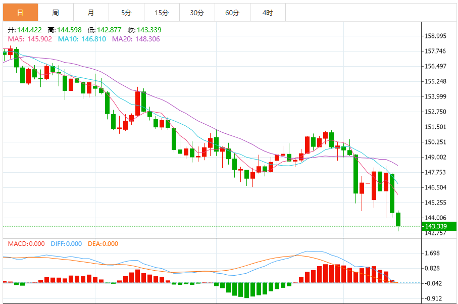 周一(4月14日),美元/日元下跌143.076,暂报143.053,跌幅0.37%。 市场基本面分析 日本央行行长植田和男周一表示,由于美国的关税政策,全球和日本国内经济的不确定性急剧上升。植田对国会表示:“美国关税可能会通过各种渠道对全球和日本经济造成下行压力。” 植田称:“日本央行将从可持续实现