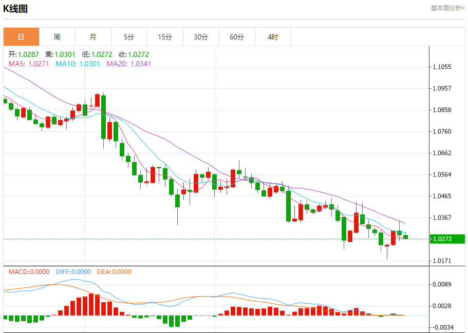 周一晚间,美元指数现报109.064,跌幅0.31%,现对美元兑欧元、英镑、日元主要货币对分析表述如下: 欧元/美元 汇价高见1.0326,低见1.0266。上一交易日,汇价收于1.0269。 基本面:由于欧洲央行的鸽派立场,欧元面临持续下行压力。欧洲央行在12月的会议纪要中表明,政策宽松的步伐将继续下去,且欧