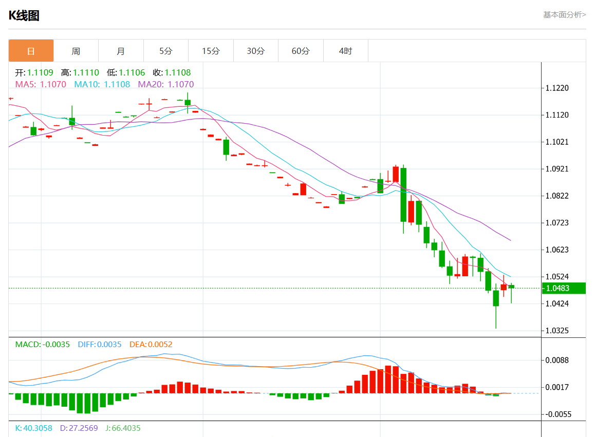 周二晚间,美元指数现报106.780,跌幅0.08%,现对美元兑欧元、英镑、日元主要货币对分析表述如下: 欧元/美元 汇价高见1.0521,低见1.0425。上一交易日,汇价收于1.0495。 基本面:I数据突显欧元区商业活动持续疲软后,欧元承压。11月HCOB欧元区综合I预览值大幅降至48.1,低于10月的50.0,也远低于