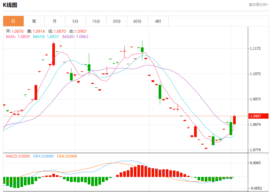 周一欧市盘中,欧元/美元最新报1.0891,日图涨0.54%。 今日分析:在1.0860之上,看涨,目标价位为1.0925,然后为1.0950。 技术点评:RI技术指标看涨,有进一步向上趋势。 支撑位:1.09751.09501.0925 阻力位:1.08601.08301.0810 (亚汇网编辑:静香)