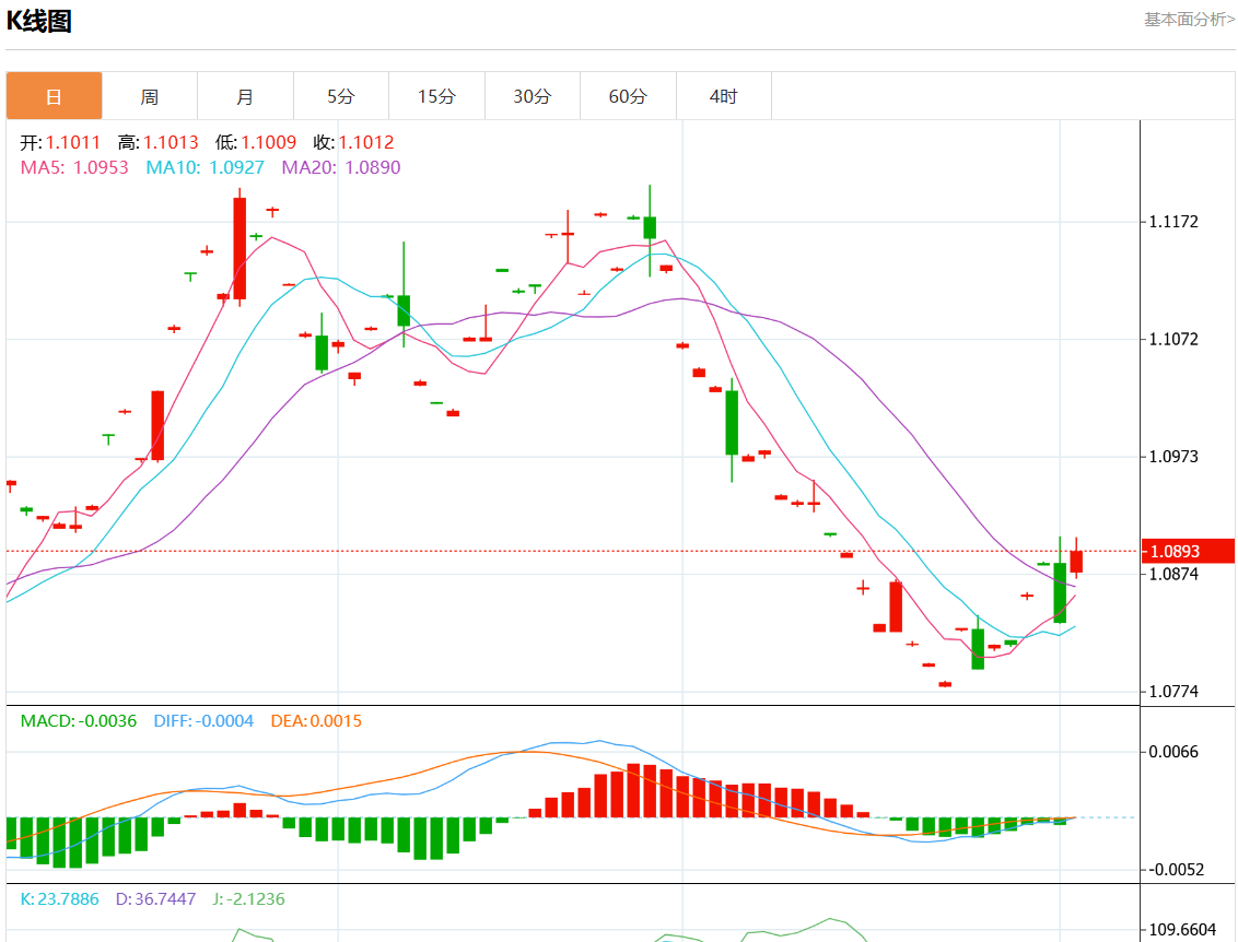 周二晚间,美元指数现报103.738,跌幅0.15%,现对美元兑欧元、英镑、日元主要货币对分析表述如下: 欧元/美元 汇价高见1.0901,低见1.0872。上一交易日,汇价收于1.0877。 基本面:周一调查显示,11月欧元区投资者信心连续第二个月上升,但升幅略低于预期,原因是对当前形势的满意度略有提高,从而